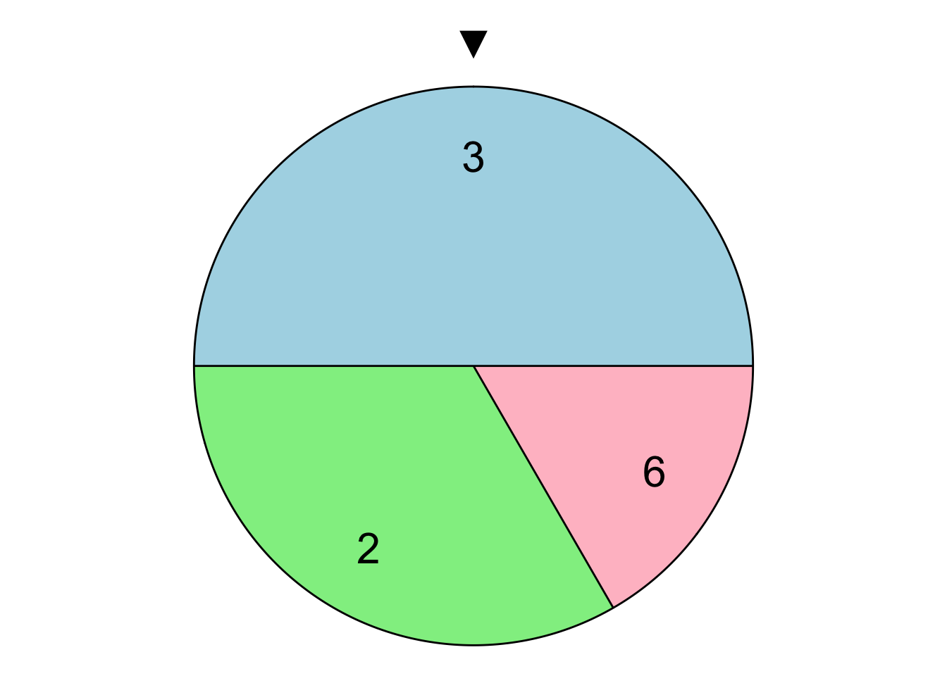 Zadanie 3.2 (Luenberger 2003) Koło fortuny Gracz płaci 1 USD za uczestnictwo w grze “koło fortuny”, w której uzyskana wypłata zależy od tego, na którą część koła wskaże po jego zatrzymaniu czarny trójkąt.